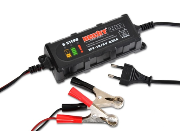 Hecht 2012 kimeneti feszültség – áram: 6V – 0,55A / 12V – 1A Teljesítmény: 15 W Bemeneti feszültség: 230V/50Hz Bementi vezeték hossza: 1,5m Kimeneti vezeték hossza: 1,5m. Intelligens töltésvezérlés Csepptöltő funkcióval. Használható: – 6V-os és 12V-os akkumulátorok töltésére (gyermek elektromos járművek /kismotor, kisautó/ személygépkocsik, motorkerékpárok) – 4-60 Ah teljesítményű akkumulátorok töltésére Csatlakoztatása után automatikusan felismeri az akkumulátor típusát és kiválasztja a megfelelő feszültséget és a legjobb töltési módot, majd ezt átlagértéken tartja, így az akkumulátor NEM SÉRÜLHET Teljes feltöltés után a töltő automatikusan átkapcsol az ún. karbantartási üzemmód-ra, amely ellenőrzi az akkumulátor töltöttségi állapotát és folyamatosan teljesen feltöltve tartja A töltés folyamatát és az akkumulátor állapotát LED-ek jelzik A töltő képes hibaérzékelésre, mint például a rövidzárlat, alacsony vagy magas feszültség, ekkor automatikusan lekapcsol A lyukak segítségével akár falra is rögzíthető.