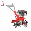 A fűnyíró kezelése nagyon egyszerű, a hideg indítás megkönnyítése érdekében primerrel van felszerelve, amivel pumpálni tudja az üzemanyag keveréket. A fogantyún található a motort irányító kar, ami lenyomott állapotban hagyja járni a motort, ha elengedi, a motor leáll. Így a fűnyírót műszakilag kevésbé jártas személy is tudja használni. Ez a kar ugyanolyan széles, mint a fogantyú, így bármikor elengedheti az egyik kezével, pl. amikor el szeretné tartani az Ön elé belógó ágakat. A fogantyú nagy szárnyas anyával van rögzítve, ami megkönnyíti az összeszerelését.